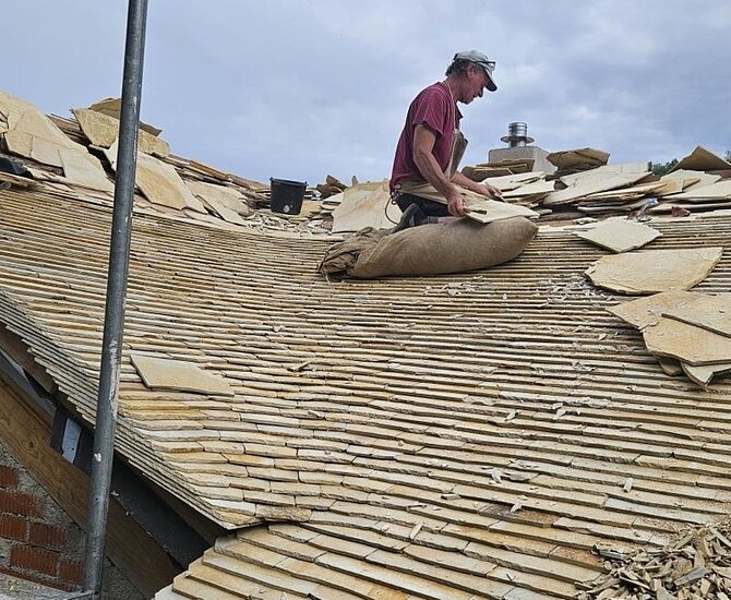 Seltene Handwerkskunst im Altmühltal: So entsteht ein Legschieferdach am Jurahaus