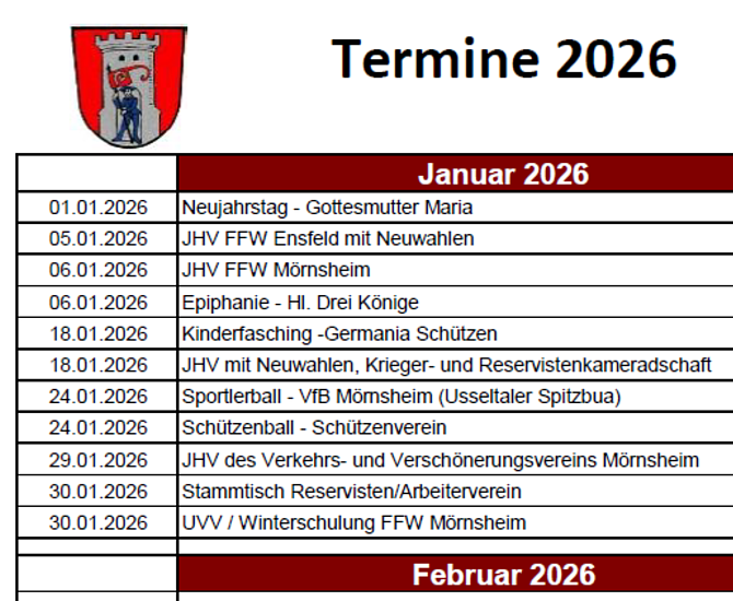 Belegungskalender Sporthalle Mörnsheim 25/26