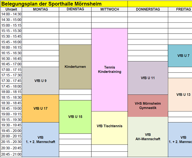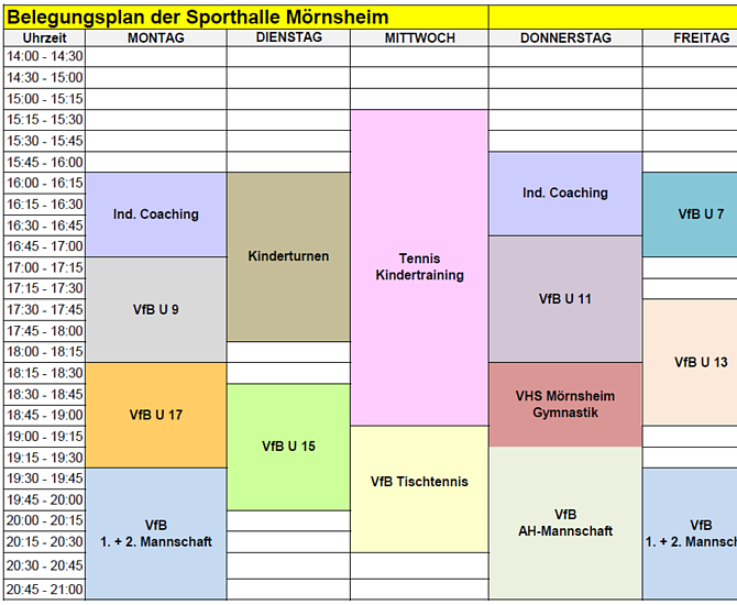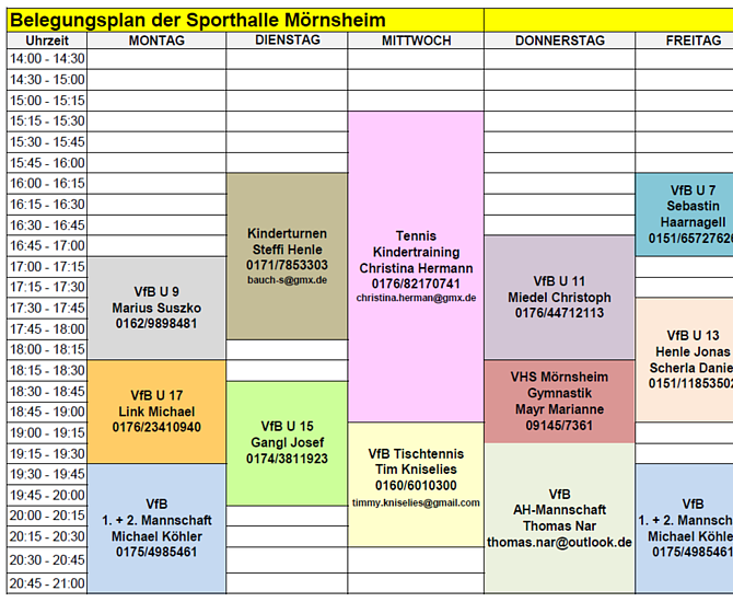 Belegungskalender Sporthalle Mörnsheim 25/26