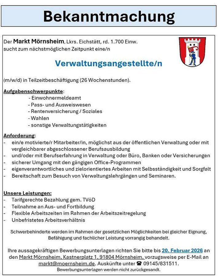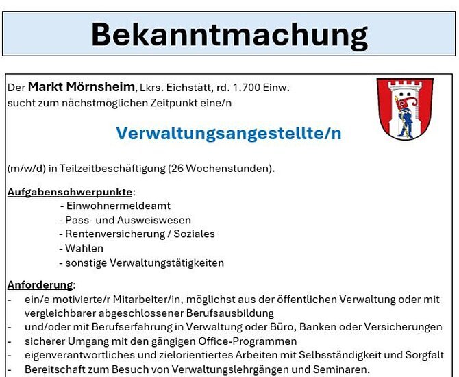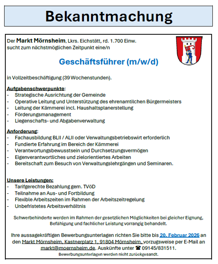 Mörnsheim bald nicht mehr hauptamtlich verwaltet
