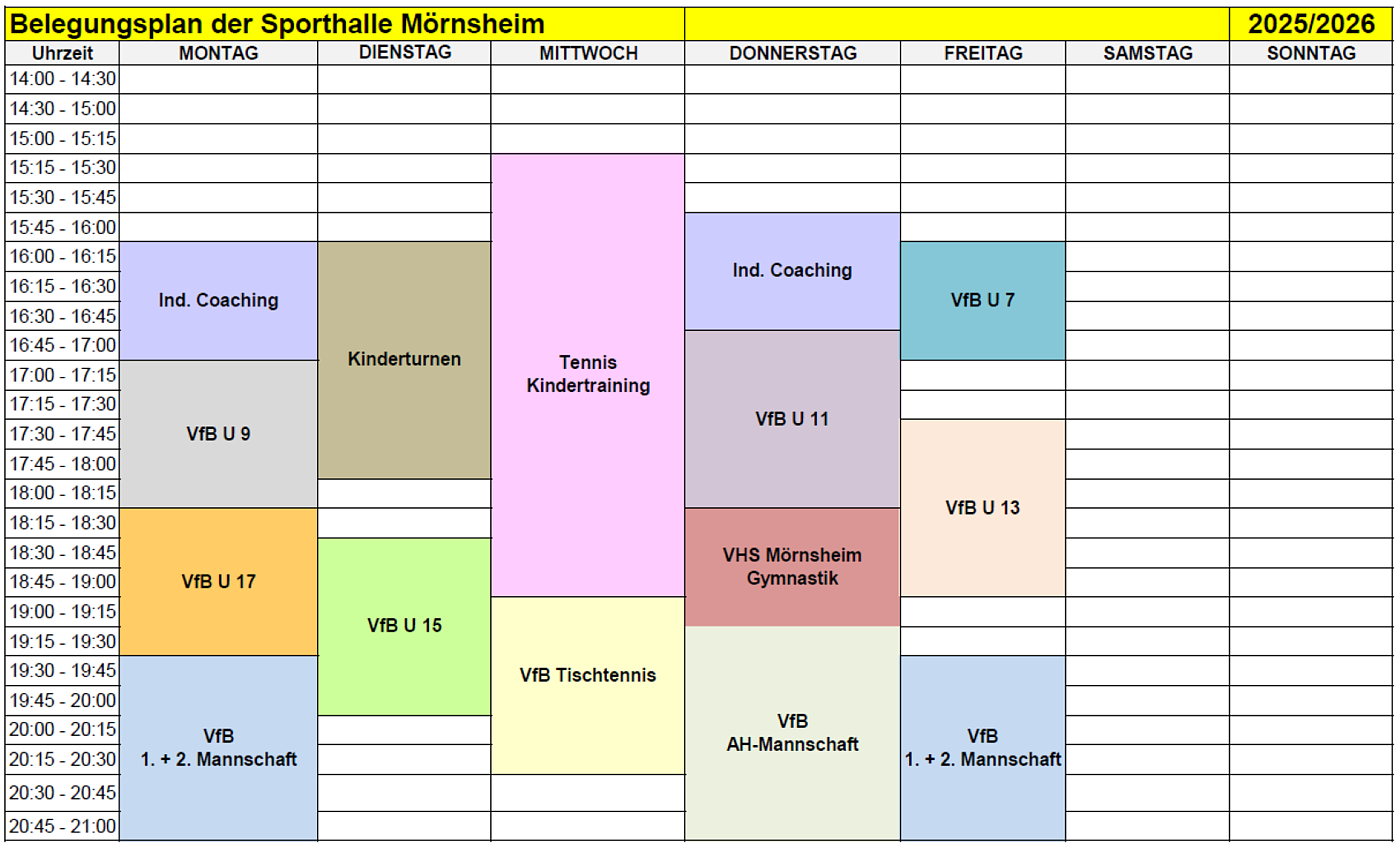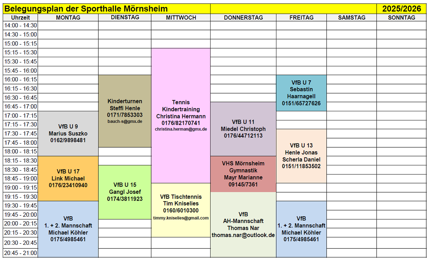 Belegungskalender Sporthalle Mörnsheim 25/26