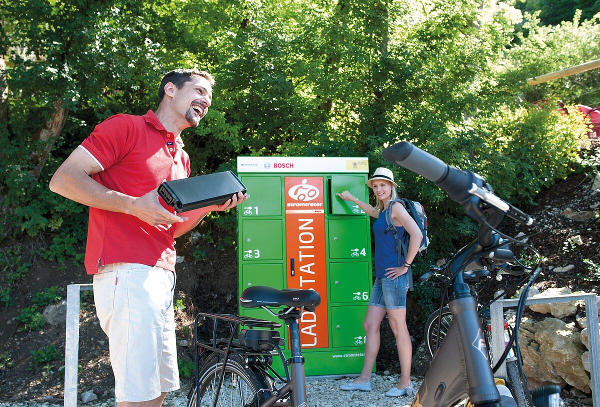 Für alle Pedelecfahrer ist ein öffentlich, zugänglicher Outdoorladeschrank direkt am Altmühltalradweg stationiert. Hier können Sie unkompliziert mit 1,00 € Pfand Ihre Akkus kostenlos aufladen.