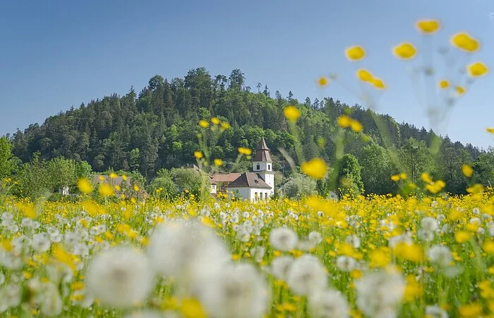 Zwischen Solnhofen und Eßlingen zieht die bekannteste Felsformation des Altmühltals alle Blicke auf sich: die „Zwölf Apostel”, eines der 100 schönsten Geotope Bayerns: Die zwölf Kalksteinfelsen sind ehemalige Riffe des urzeitlichen Jurameeres. In Eßlingen, auf der anderen Seite des Flusses, ziehen die typischen Plattenkalkdächer der Jurahäuser die Blicke auf sich. Bald darauf überquert man die Grenze: von Mittelfranken geht es nach Oberbayern, was sich spätestens im nächsten Gasthaus bemerkbar machen dürfte... Erster Ort in Oberbayern ist Altendorf mit seiner malerisch oberhalb des Ortes gelegenen Wallfahrtskapelle, deren typisch bayrisches Zwiebeltürmchen ins Auge sticht.